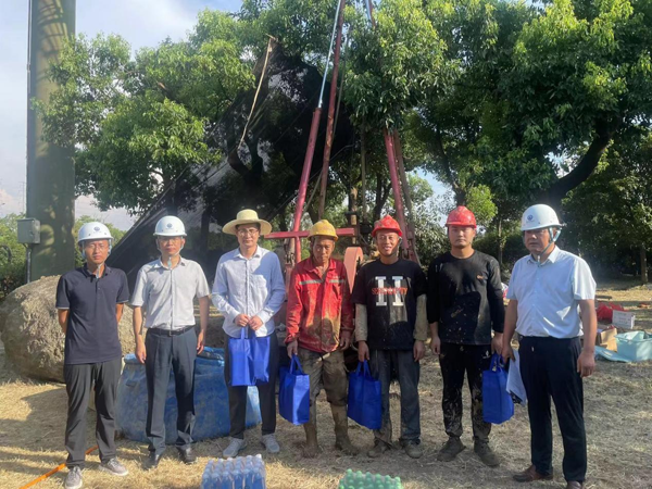 在项目工作现场,队领导与项目组人员亲切交谈,细致询问项目组人员的生活、生产等情况,详细了解工作进度,向坚守一线的职工表示诚挚的问候,叮嘱大家高温天气仍在持续,要科学安排作业时间,避开高温时段,注意做好防暑降温工作和个人安全防护,同时要严格落实安全生产措施,切实抓好项目质量,按期保质保量完成任务。