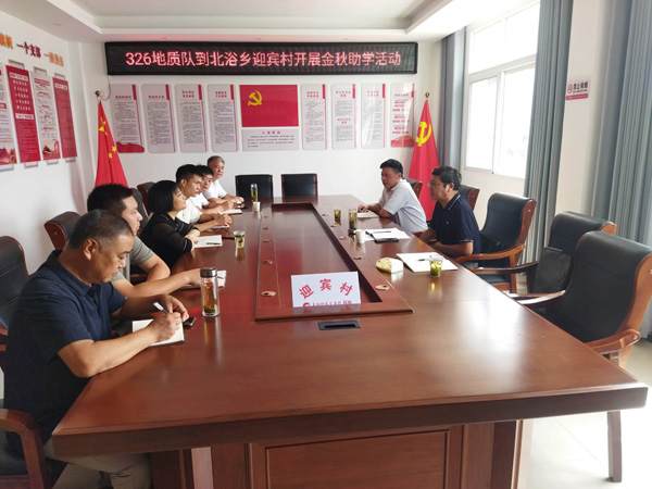 8月20日,队领导赵亮、袁明一行赴结对村宿松县北浴乡迎宾村调研并开展了“金秋助学”帮扶活动。 在座谈会上,北浴乡党委书记司欣荣介绍了北浴乡及迎宾村矿产资源及开发利用情况,赵亮介绍了我队地质专业技术力量,双方就如何利用矿产资源,助力乡村振兴进行了交流。 座谈会后,我队为5位贫困大学生发放了助学资金。(黄兴结)